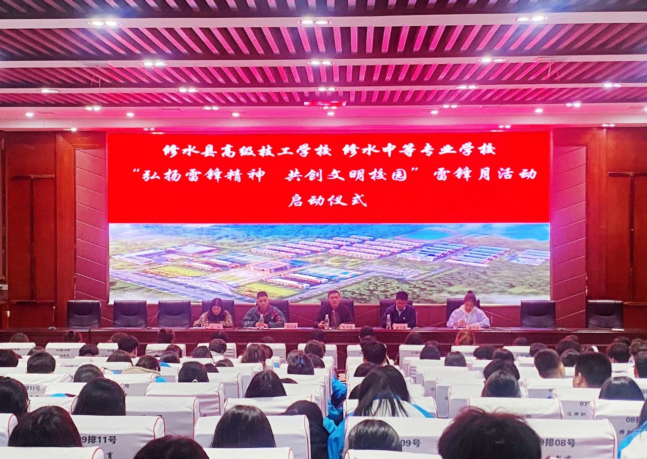 為貫徹落實(shí)黨的二十大精神,弘揚(yáng)新時(shí)代雷鋒精神,倡導(dǎo)校園文明新風(fēng),3月5日晚,修水縣高級(jí)技工學(xué)校 修水中等專(zhuān)業(yè)學(xué)校開(kāi)展了“弘揚(yáng)雷鋒精神 共創(chuàng)文明校園”學(xué)雷鋒志愿服務(wù)活動(dòng)月啟動(dòng)儀式。副校長(zhǎng)車(chē)明星、團(tuán)委書(shū)記謝文富、團(tuán)委副書(shū)記劉衛(wèi)龍、團(tuán)委老師戴園麗、團(tuán)委老師江玲及各班班長(zhǎng)、團(tuán)支書(shū)及學(xué)生代表參加啟動(dòng)儀式,啟動(dòng)儀式在雄壯的國(guó)歌中開(kāi)啟。